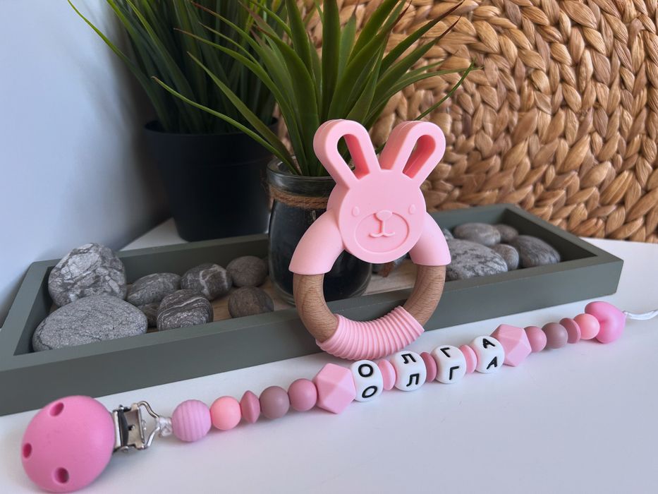 Силиконов клипс за биберон с име и гризалка