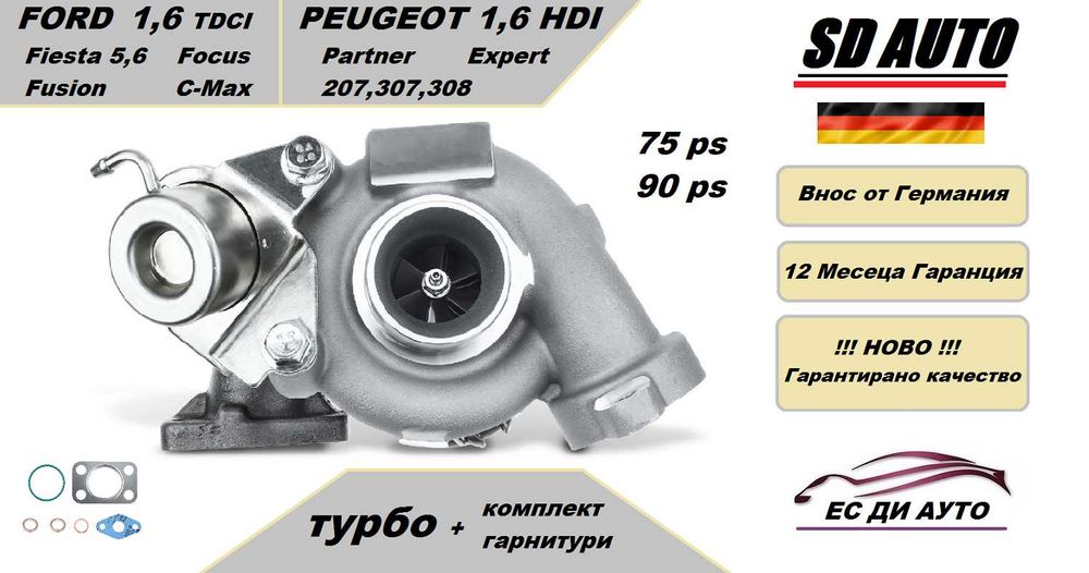 Турбина с комплект гарнитури за Ford 1,6 TDCI/Peugeot 1,6 HDI-75/90ps