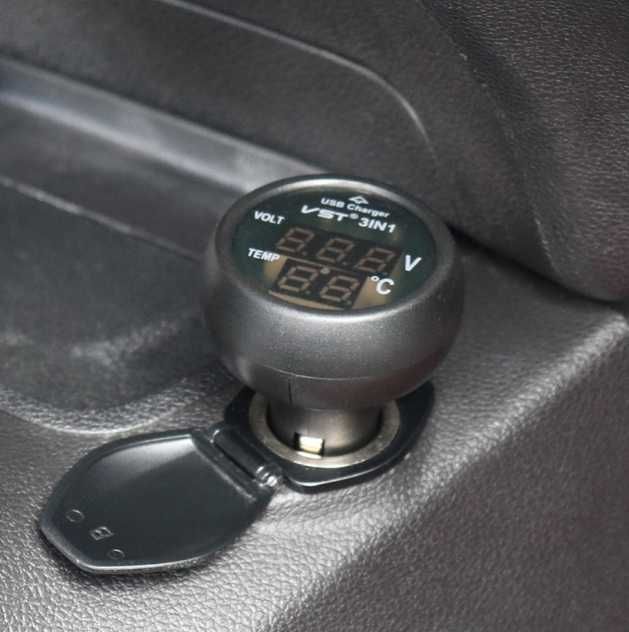 Волтметър, Термометър и USB зарядно за кола, уред 3 в 1