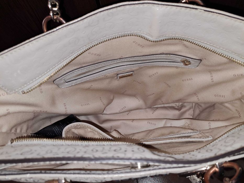 Чанта Guess. Подходяща и за документи. Забележка: цветът на металът на дръжките е леко променен (според мен не е нещо фатално и натрапчиво). Цена:150 лв.КОЛЕДНО НАМАЛЕНИЕ, ЦЕНА 120 ЛВ.