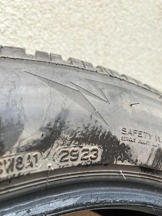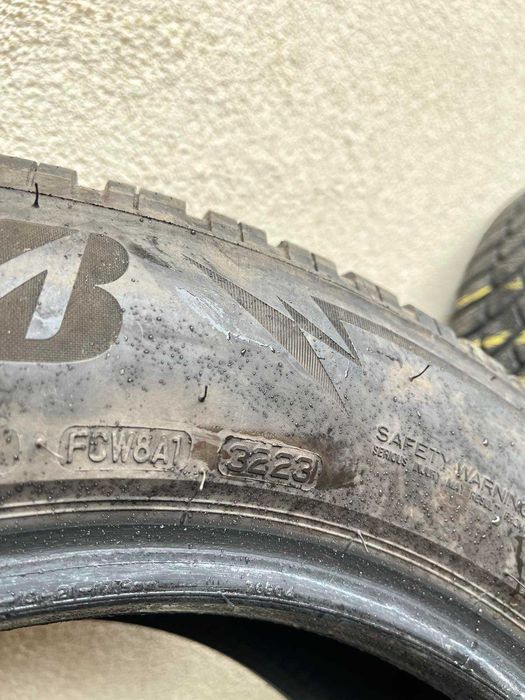 Гумите са подсилени - RUNFLAT, зимни, на около 25-30000км. ДОТ 29 седмица на 2023 г. Едната гума има забележки - 3 повърхностни цепнатини по борда на каучука, които се виждат на последната снимка и са оградени в жълто. Цена - 490 лева за четирите.