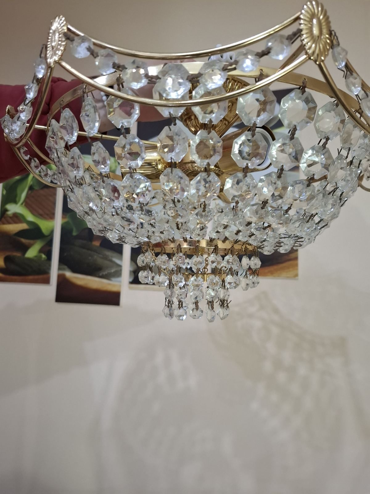 Стар кристален полилей. Диаметър 41 сантиметра, има три фасунги с цокъл Е27