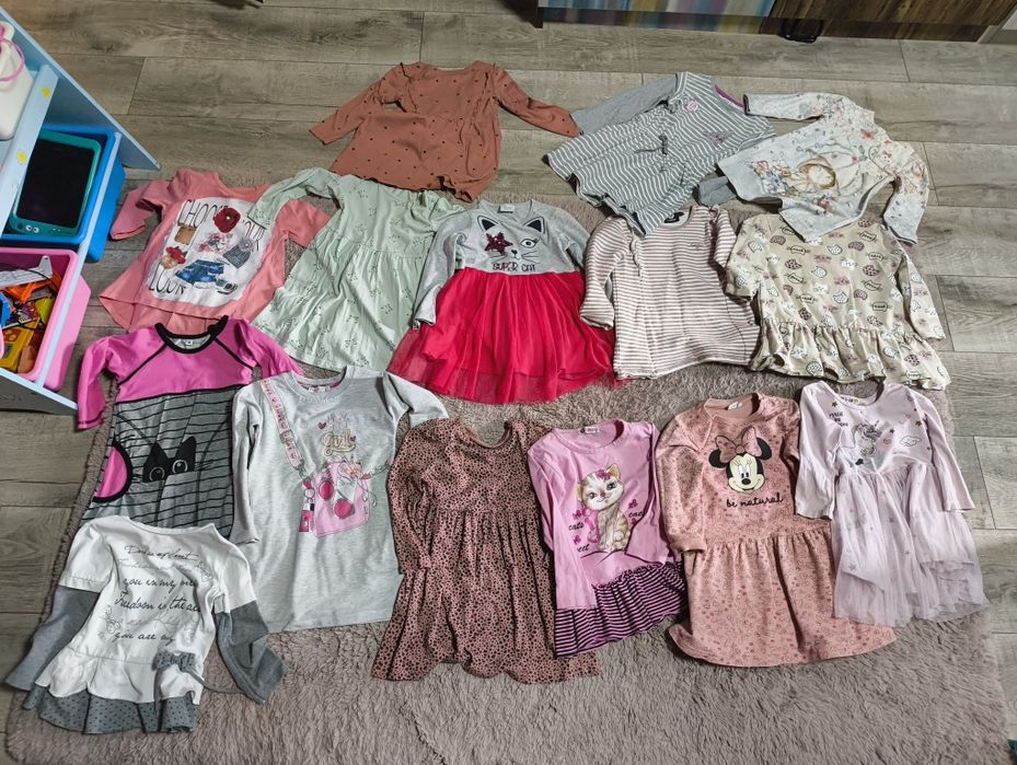 Лот от 15 рокли/туники .Не деля лота цената е за всичко.Повечето марки HM ,Disney,breeze и български.