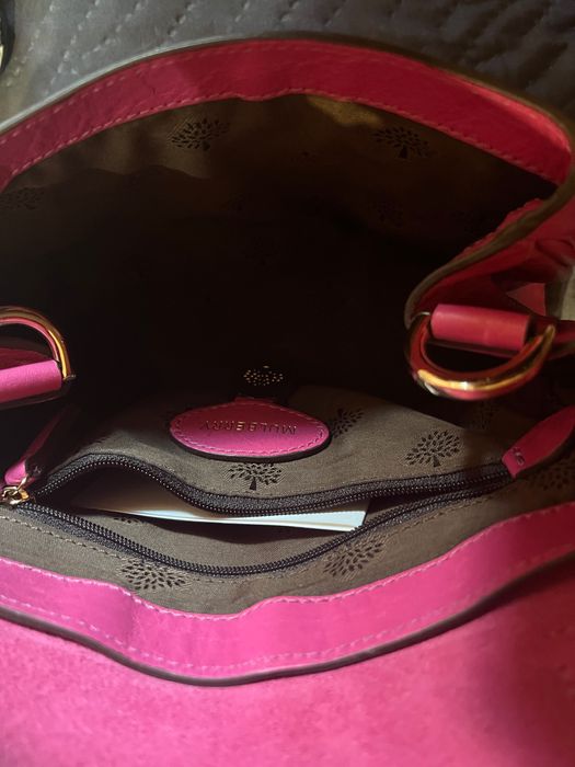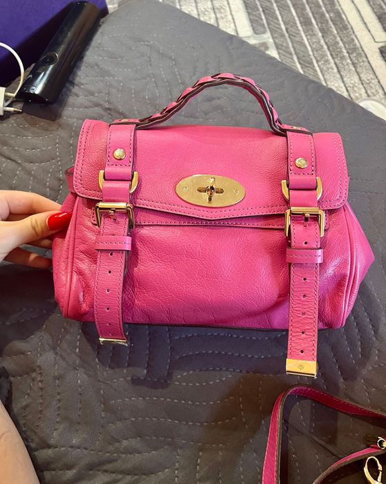 Никакви дефекти. Нова розова чанта Mulberry mini Alexa с всички документи. Стилна кожена розово цикламена чанта, идеална за различни поводи. Дългата дръжка се сваля и настройва. Побира шише с вода от 330 мл, разбира се телефон и какво ли не - доста е просторна. Нямам противопрахова торбичка, с касова бележка от сайта.