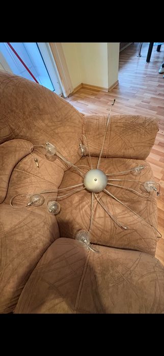 Красив полилей с прозрачни стъклени сфери.Осветлението създава приятна атмосфера в помещението. Подходящ за хол, трапезария или спалня.Полилеят е масивен и доста тежък.