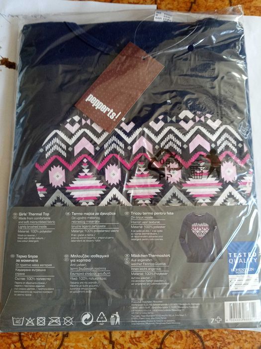 чисто нова термо блуза подходяща за ски екип за момичета.За възраст 8-10г.100% полиестер произведено в Германия.