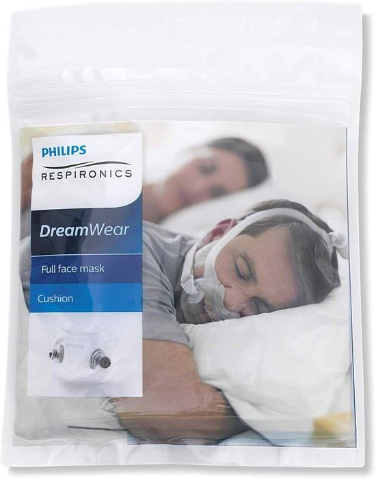 Това е заместващата възглавница за CPAP маската за лице на Philips Respironics DreamWear: средно широка Възглавницата за цяло лице на маската DreamWear лежи под носа, осигурявайки въздушен поток както към устата, така и към носа, без всъщност да се вкарва в ноздрите или да упражнява свръхнатиск. Поради ниския профил на възглавницата няма абсолютно никакъв контакт в горната част на носа или към чувствителния носен мост. Отворовете за издишване на възглавницата и в лакътя на маската тихо разпръскват излишния въздух. Размер на възглавницата: MW