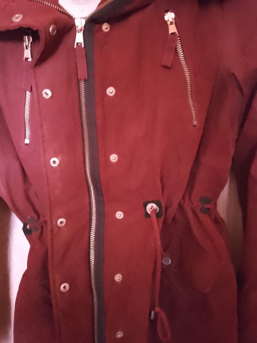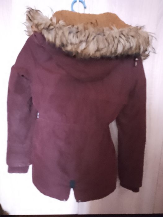 Продавам зимно дамско яке размер М със връзка на талията за стягане,странични джобове и пухено о вътрешната страна