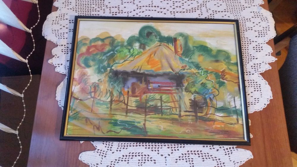 Малка къща сред дървета. С хубава рамка със стъкло отпред.