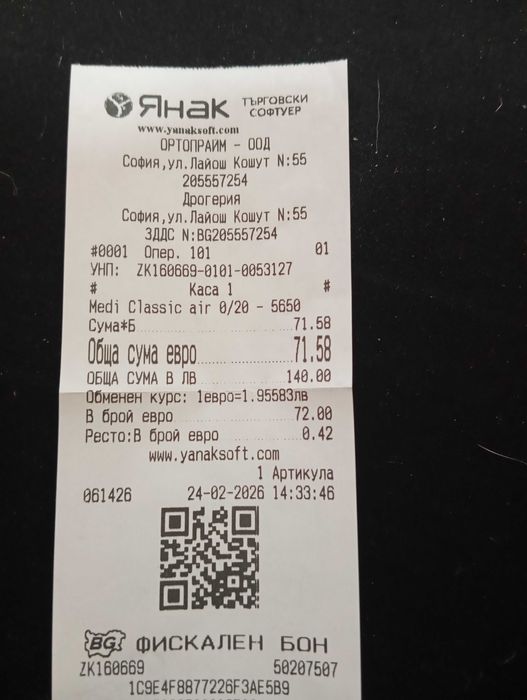 140 лв. / 71.58 €