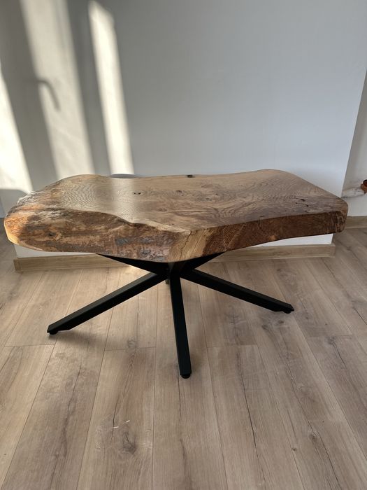 Масивна холна маса от дърво и метални крака ръчна изработка