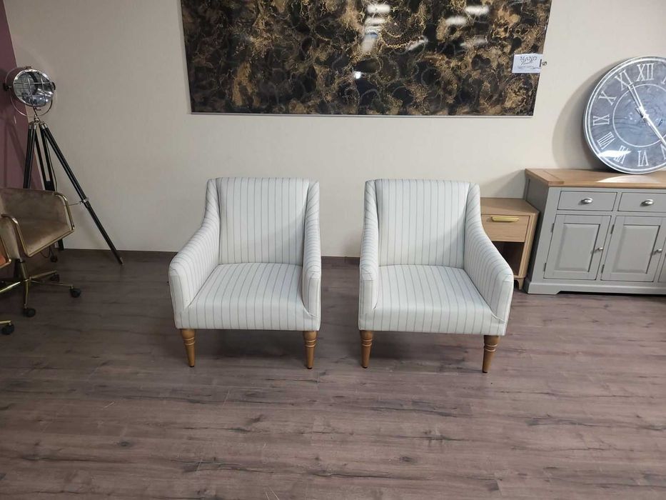 Два броя кремави фотьойли от плат на райета