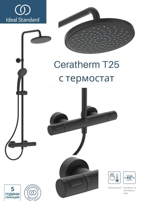 Душ система с  термостат Ceratherm T25 Черен мат