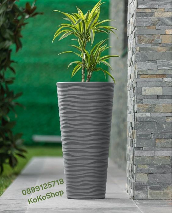 Кашпа за цветя – висока, декоративна, пластмасова