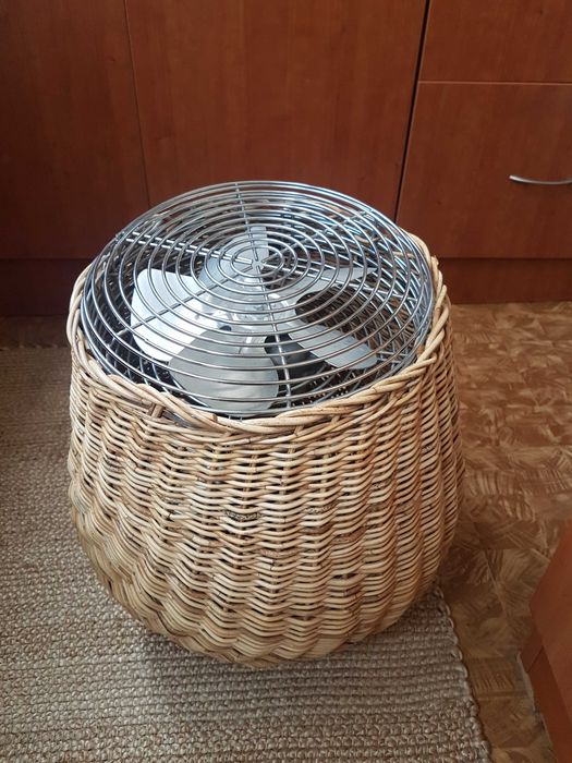 Бутиков стаен вентилатор с корпус от естествен ратан.