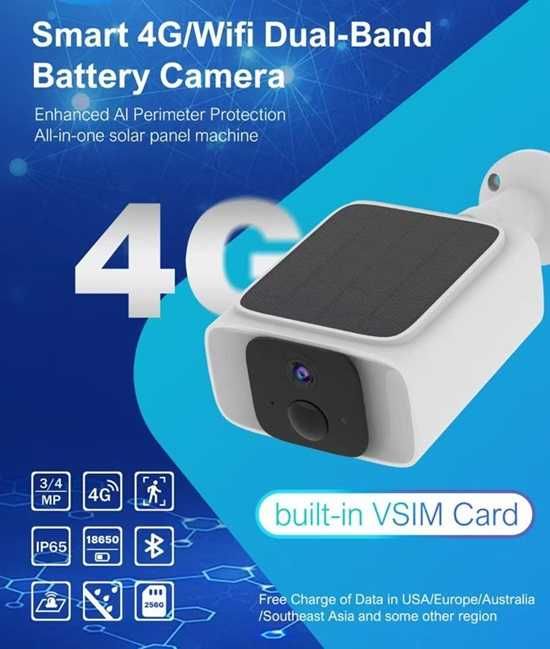 WiFi соларна камера 4G SIM карта, 8MP V380 VC3-4G