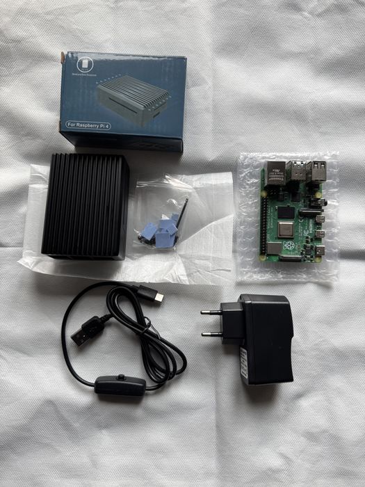 Raspberry Pi4 4 GB с зарядно, пасивна кутия и кабел с ON/OFF бутон