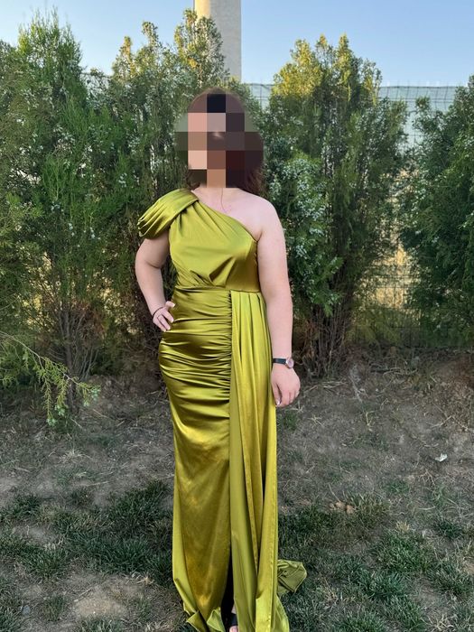 Уникално Красива Дълга жълта сатенена рокля !