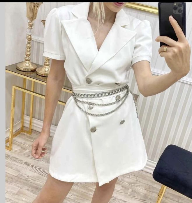 Бяла дамска рокля Универсален размер без колан!