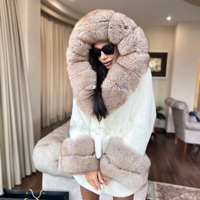 палто естествен косъм с качулка в/във Дрехи