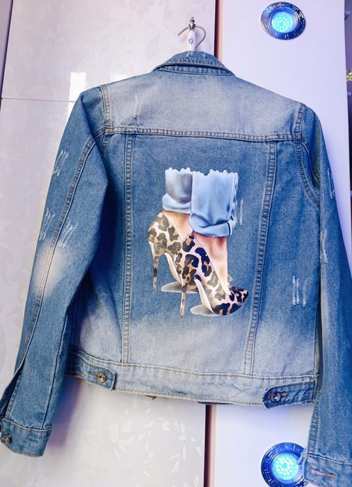Бутиково дънково яке с перли и камъни