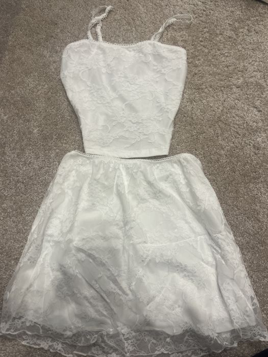 Бял бандажен сет – топ с дълъг ръкав + пола ,ХС размер