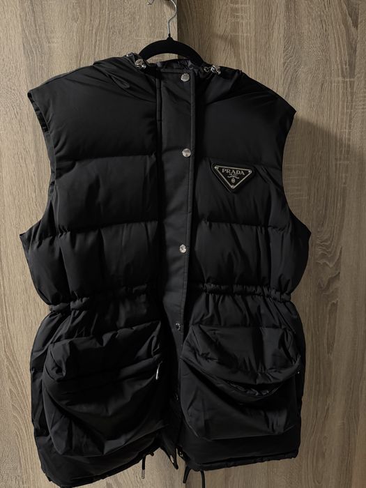 Дамски елек Prada грейка пухенка с качулка