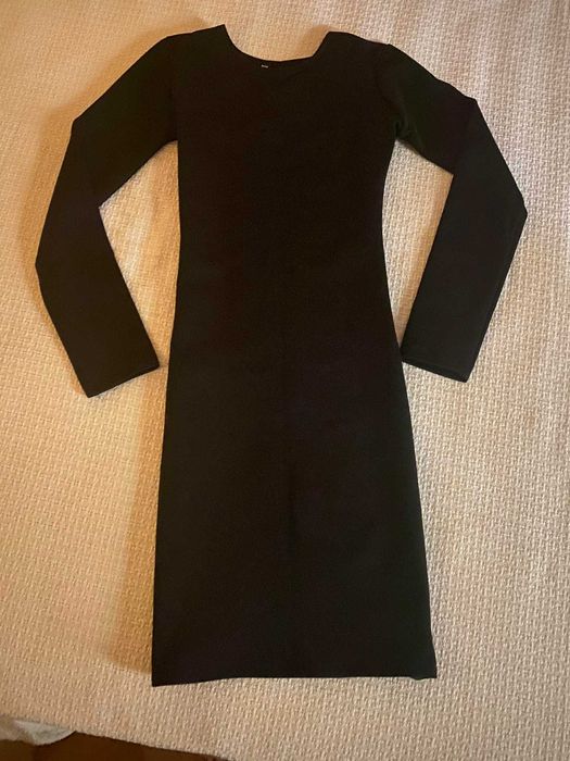 Черна, плътна рокля по тялото