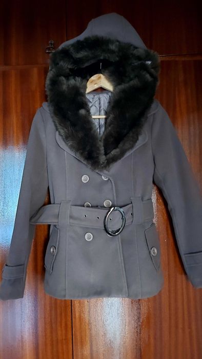 Зимно сиво яке с пух и коланче