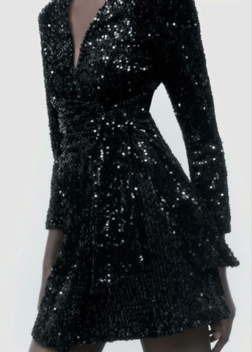 ZARA рокля с пайети – парти / официална, черна