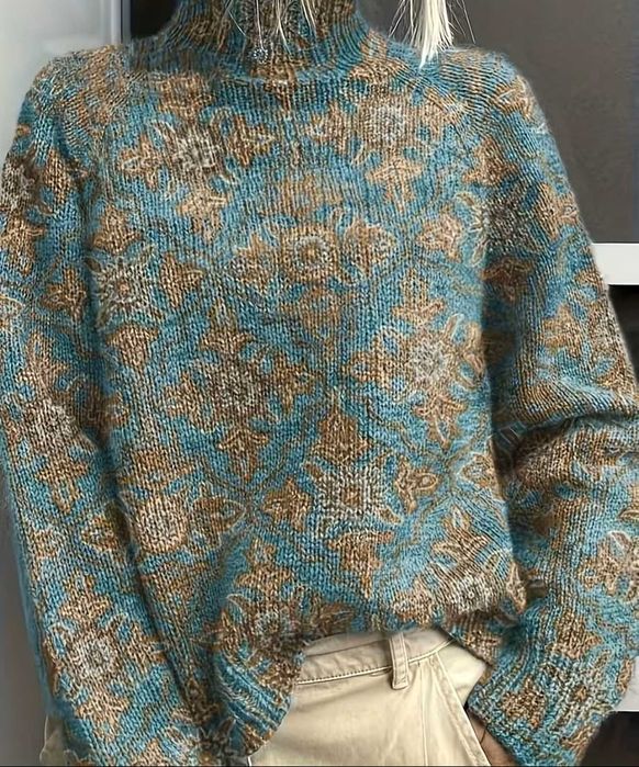Модерен Дамски пуловер с принт и висока яка в елегантен стил