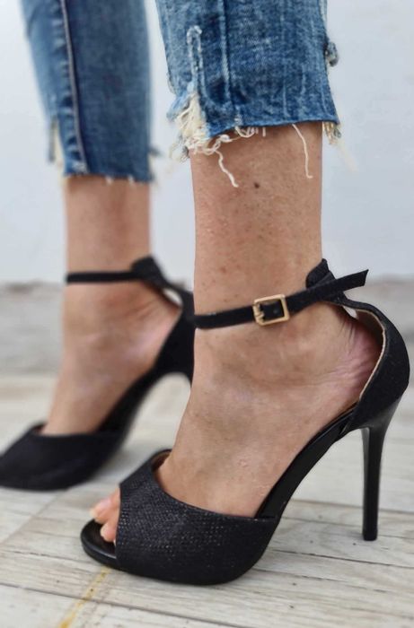 Черни сандали с ток- 35 номер