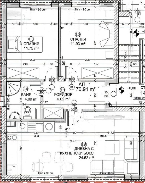 Слънчев тристаен апартамент с дворна тераса пред АКТ 15 в кв. Драгалев