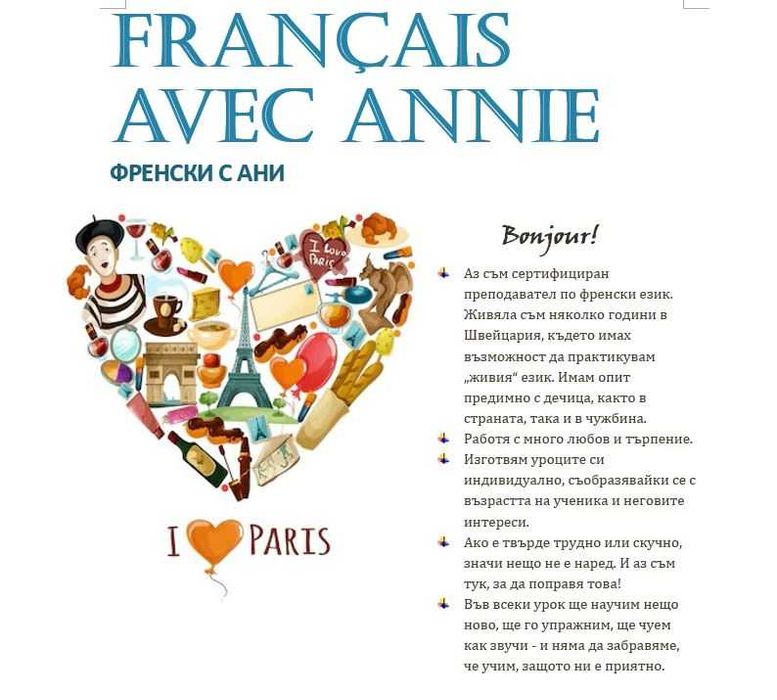 Разгледайте най-новите обяви в Френски език в града Нови Искър на OLX.bg. Купувайте и продавайте местни продукти лесно и сигурно.