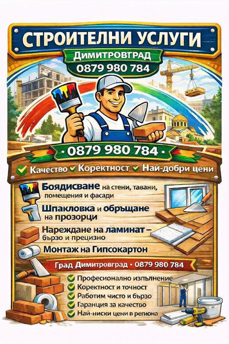 Разгледайте най-новите обяви в Ремонти, строителство в града Димитровград на OLX.bg. Купувайте и продавайте местни продукти лесно и сигурно.