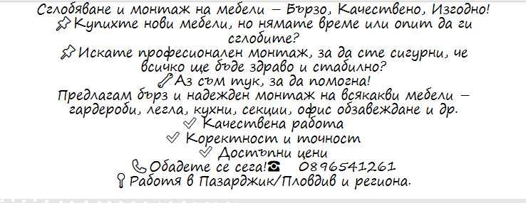 Разгледайте най-новите обяви в Монтажи, други услуги в града Росен на OLX.bg. Купувайте и продавайте местни продукти лесно и сигурно.