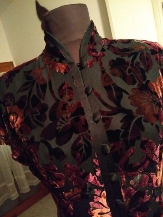 Естествена коприна - официална рокля, коприна и кадифе в черно и бордо