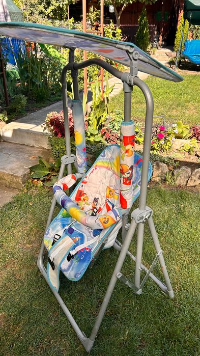 Детска градинска люлка на стойка със сенник.