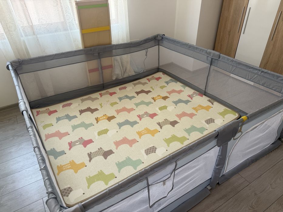 детска ограда с игрален панел и заключваща се порта