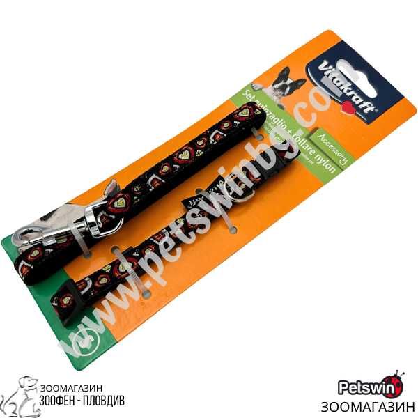 Повод с Нашийник за Дребни Кучета- S размер- Черна разцветка-Vitakraft